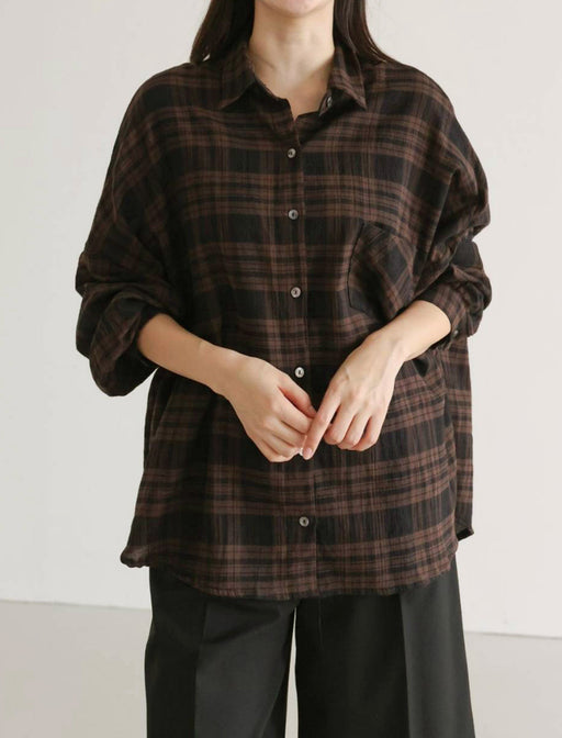 抜け感シルエットで楽しむ、大人チェックシャツ。 落ち着いた配色のチェックプリントが映える、ゆったりと羽織れるオーバーシャツ。 さらりとした素材で着心地も快適、デイリーコーデに取り入れるだけでトレンド感がアップします。