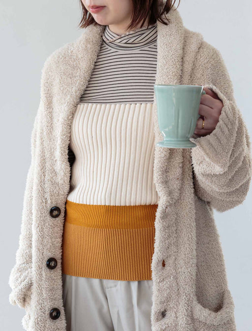 眠るために作られた締め付け感ゼロのゆったりハラマキ。 段階的にリブ幅が異なっていて、お腹部分は幅広でゆったり、腰部分は幅狭でよりフィット感が増します。 選べるニュアンスカラーとトップスに重ねて洋服感覚で装着できるのがポイント。