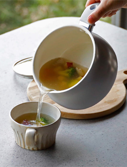 これひとつで下ごしらえから仕上げまで!時短調理の必需品。 ザルが付属していることで、「茹でる」「水洗い・水切り」「湯切り」「揚げる」などの役割をこなします。 内面は撥水性・撥油性に優れたセラミック加工で、汚れが付きにくく落ちやすい仕様。 耐熱性が高く、食材に熱が伝わりやすいので、時短調理にも繋...