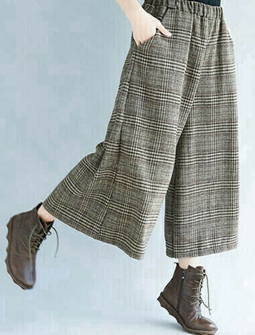 起毛素材で温かみのあるグレンチェック柄ワイドキュロット。 ウエストゴム仕様で履き心地も快適ですっきりとしたシルエットに。 シンプルなトップスと合わせるだけで、大人の上品なお出かけスタイルが完成する一枚です。