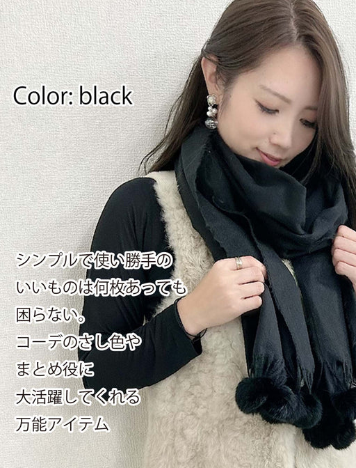 遊び心をプラス!大人可愛いポンポンがアクセントのふわっと大判ストール。 まるでカシミヤのような肌触りで、ウールが苦手な方にも肌触り優しいストールです。 可愛いポンポンが引き立つので、ぐるぐる巻きにしたり、ラフに垂らしたりと、様々な巻き方で表情の変化を楽しめます♪