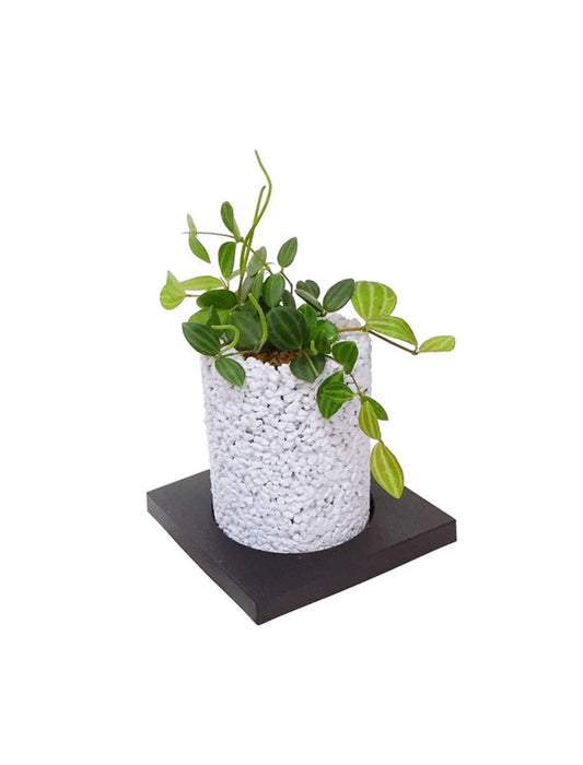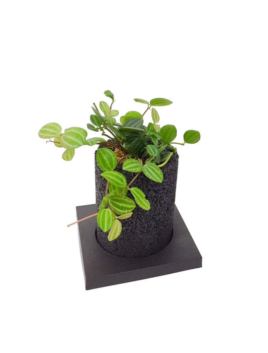 ペペロミア・アングラータ■器:竹炭(黒)、桜島の火山灰シラス(白)■受皿:プラスチック