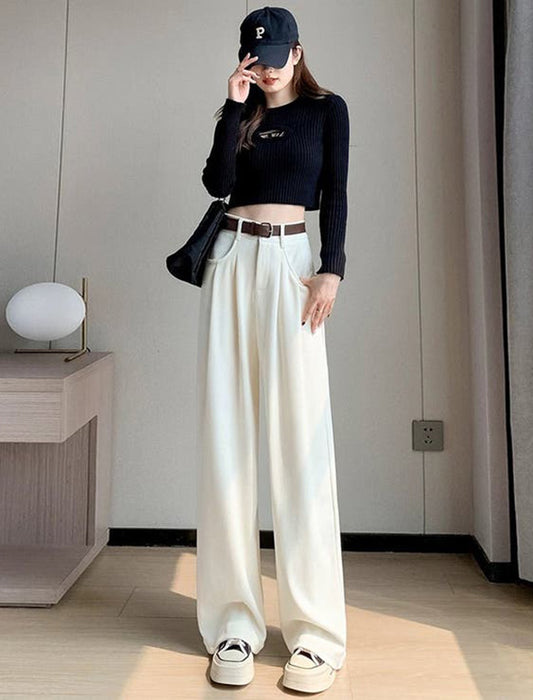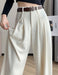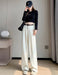 太もものラインを拾わないストレートシルエットが、脚をすっきりと見せてくれます。
