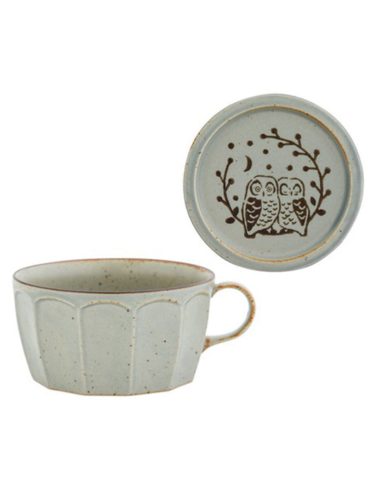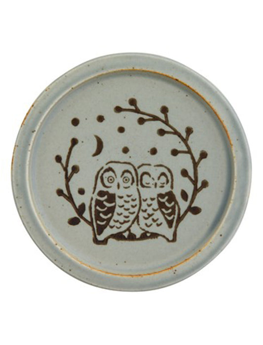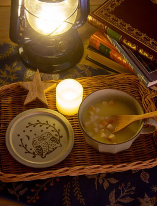 ふくろうをモチーフにした愛らしいデザインの手付きボウルと蓋のセット。