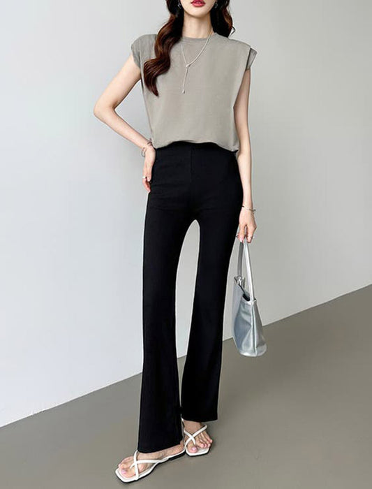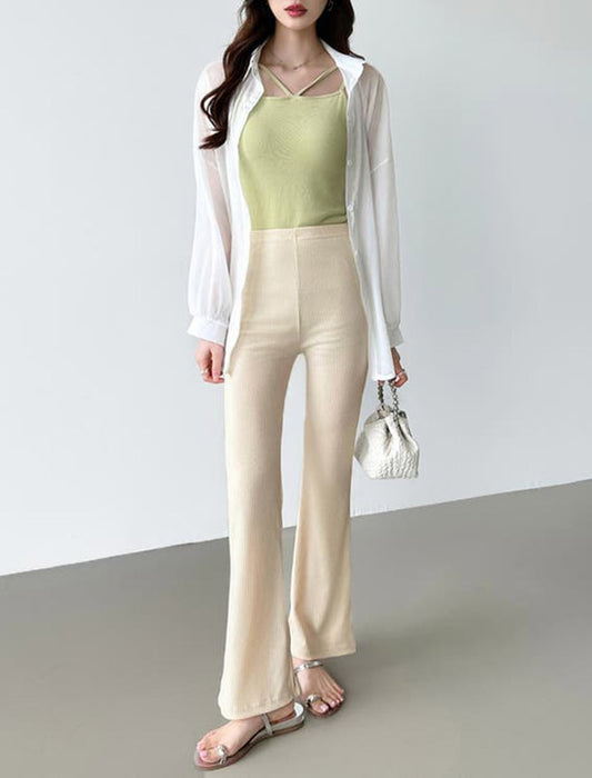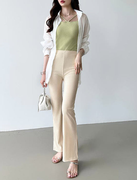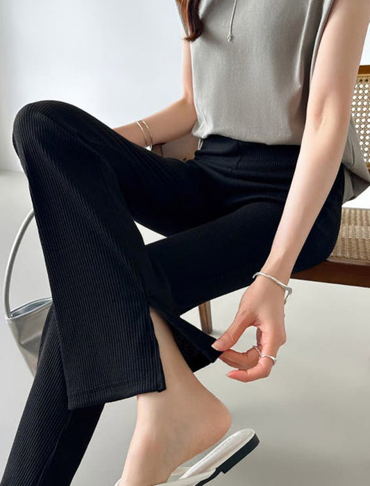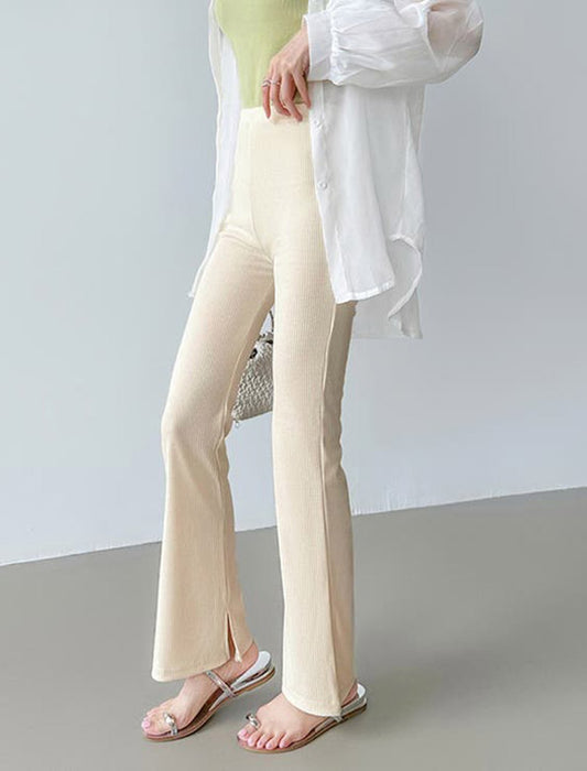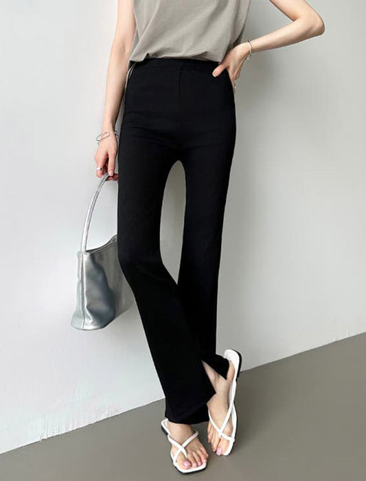抜群のストレッチ性で快適な履き心地のフレアリブパンツ。