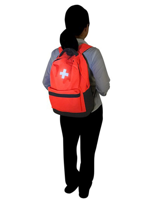 リュックサック、緊急用ホイッスル、2WAYドライバー、カッター、圧縮袋、予備袋、筆記用具セット、歯ブラシ×3本、綿棒×20本、マスク×3枚、携帯トイレ×3個、45Lポリ袋×3枚、紙皿×3枚、プラカップ×5個、割り箸×5膳、スプーン・フォークセット、2WAY懐中電灯、ラバー手袋、お薬ケース、布テープ、レインポンチョ、サンダル、アルミシート、アルミブランケット、エア枕、非常用給水バッグ、ラップ、アルミホイル、ボディタオル、ティッシュ
