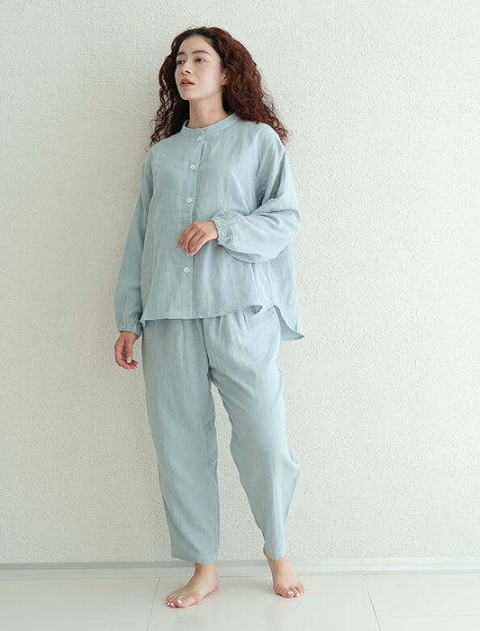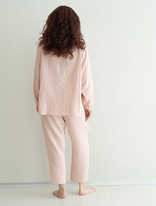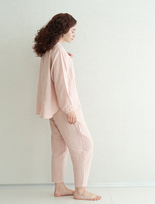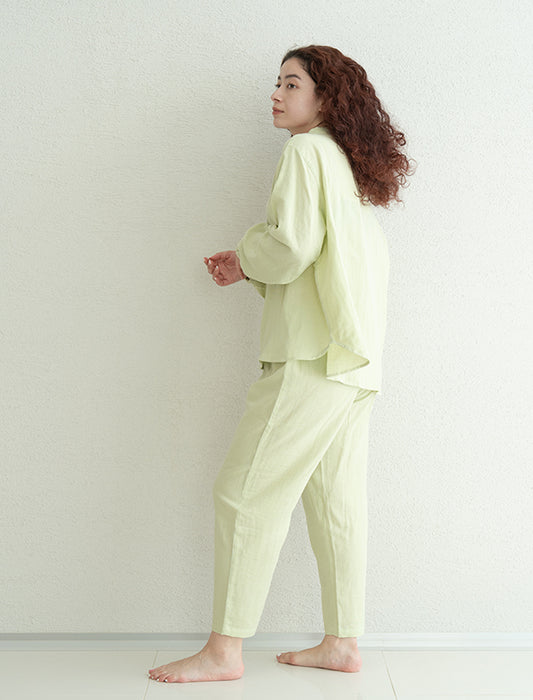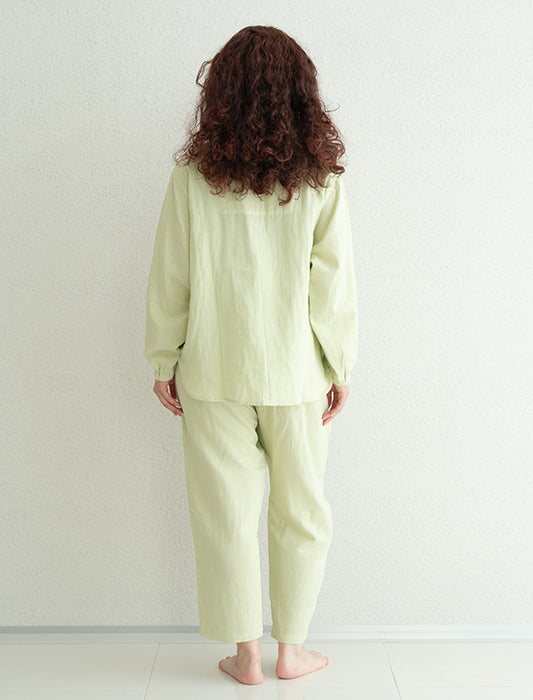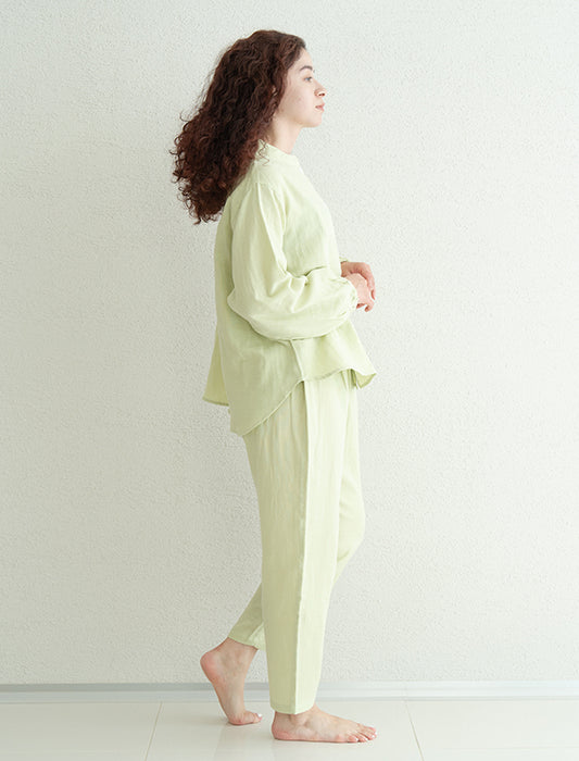 テーパードシルエットのパンツがすっきり見せつつ、リラックス感も兼ね備えた一着です。