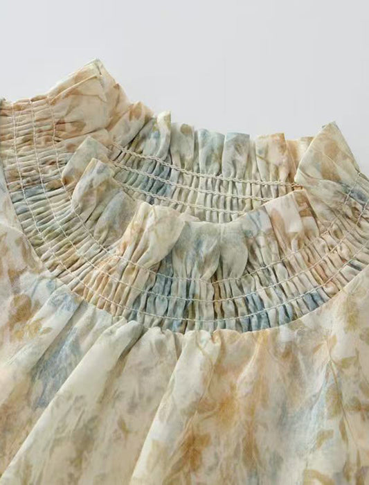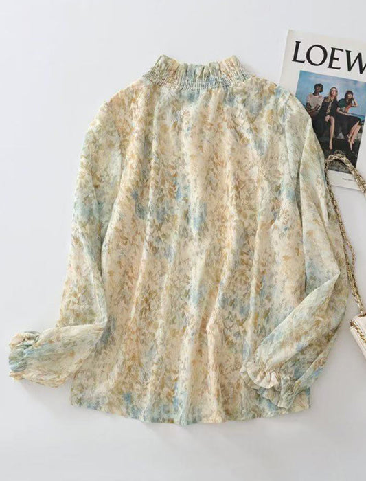 衿袖シャーリングエレガントブラウス