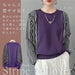 滑らかなニット地に対して、袖部分にストライプ布帛を組み合わせることで、軽やかなコントラストを演出。