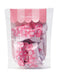 (ココアバター、砂糖、全粉乳、ストロベリーパウダー)(国内製造)、ココアバター/香料、乳化剤、紅花赤色素、(一部に乳成分・大豆を含む)