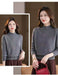 程よい高さのハイネックは首元を上品にカバーしつつ、お顔周りをスッキリと若々しい印象に見せてくれます。