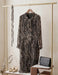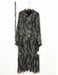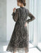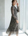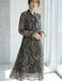ボウタイリボン モノトーン総柄 プリーツロングワンピース