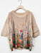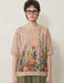 繊細な水彩風の花柄が目を引く、柔らかな風合いのサマーニットTシャツ。