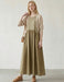 バイカラー切替ギャザーロングワンピース