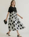 柔らかな黒Tシャツと存在感のある大ぶりドットスカートがドッキング。