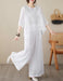 さらりとしたリネン調素材が涼やかな、トップスとワイドパンツの2点セット。