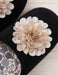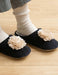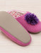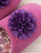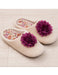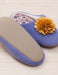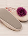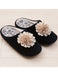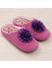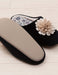 サテン生地の花モチーフを付けたインテリアスリッパ。