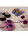 表生地にはふんわりと柔らかな綿ベロアのカラー生地を使い、にぎやかで楽しいデザインになっています。